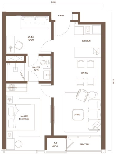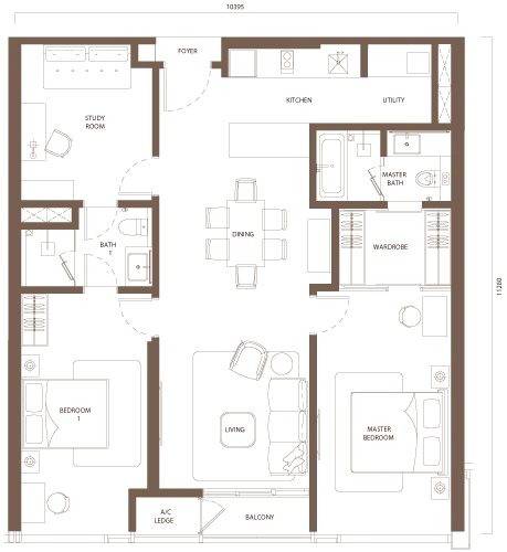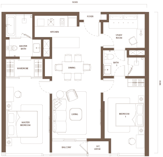 1 BEDROOM + STUDY